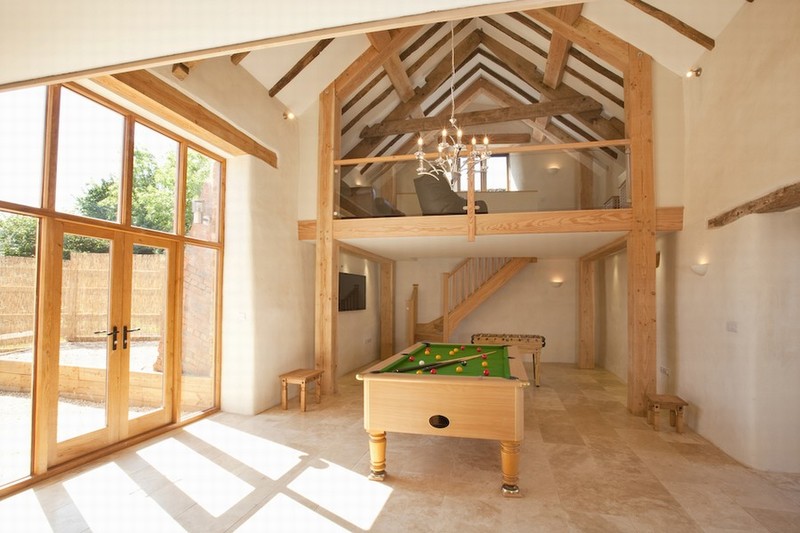 pool table and table football at one end and snuggly sofas around the stylish woodburner at the other.